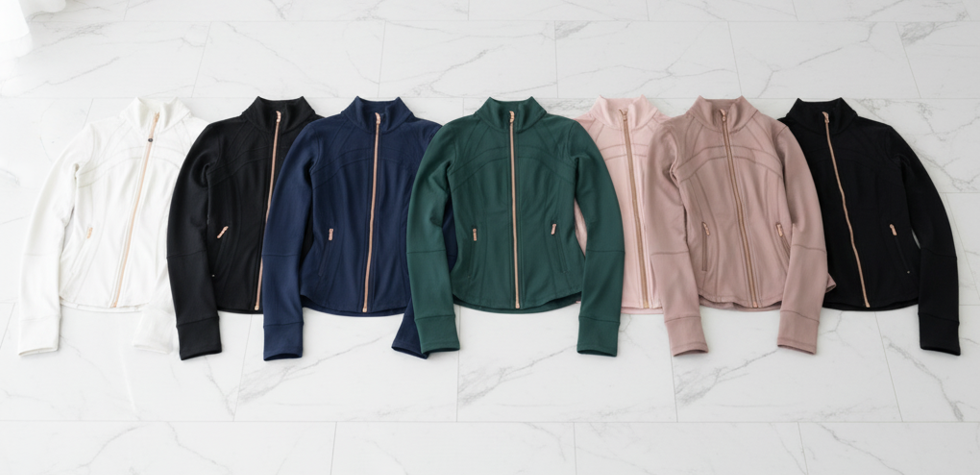 Soft whites, deep greens, serene blues, and blush pinks Each hue chosen to reflect peace and balance, Designed to move with you, From the studio to the street, For every mood, every moment.
